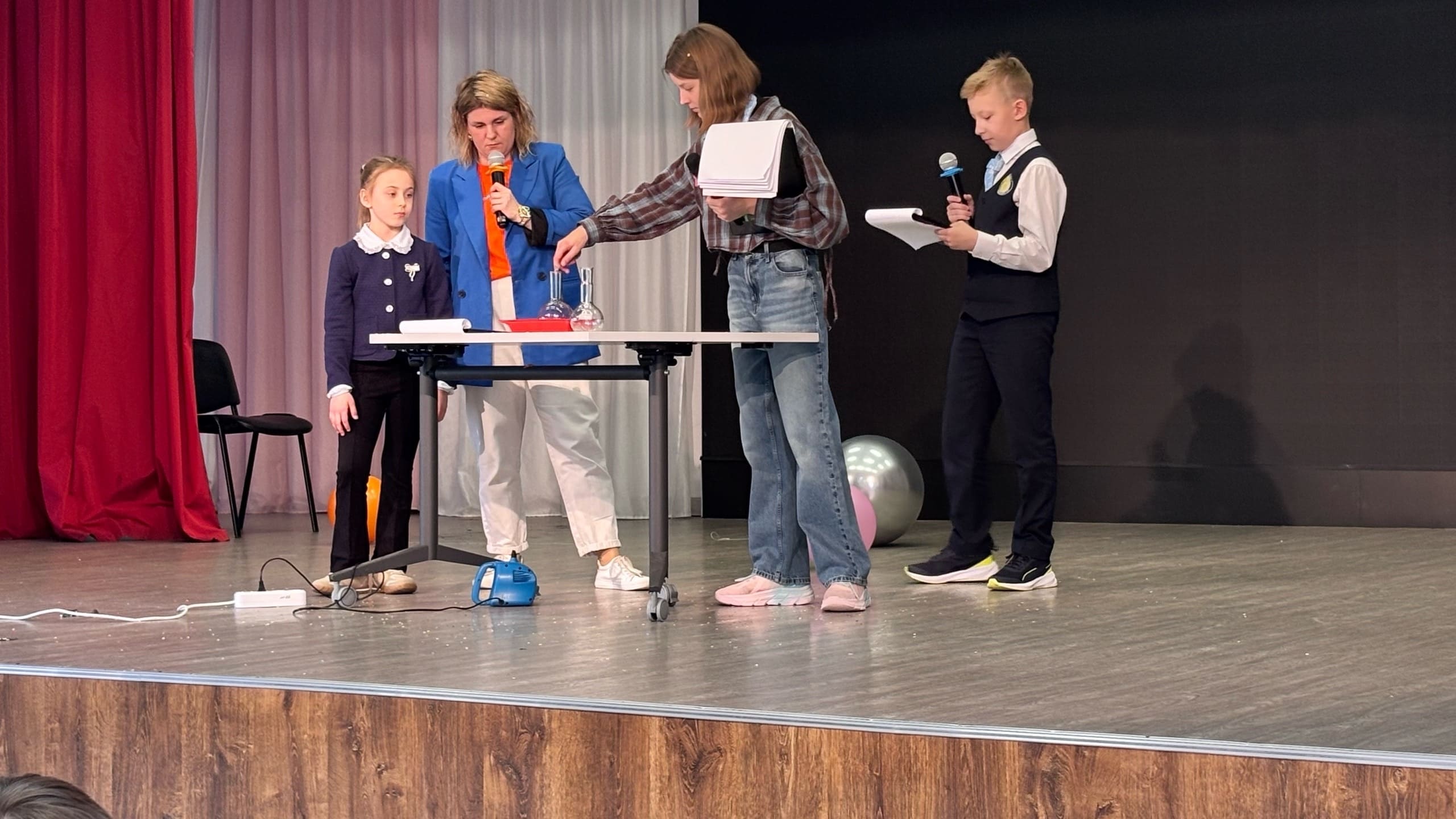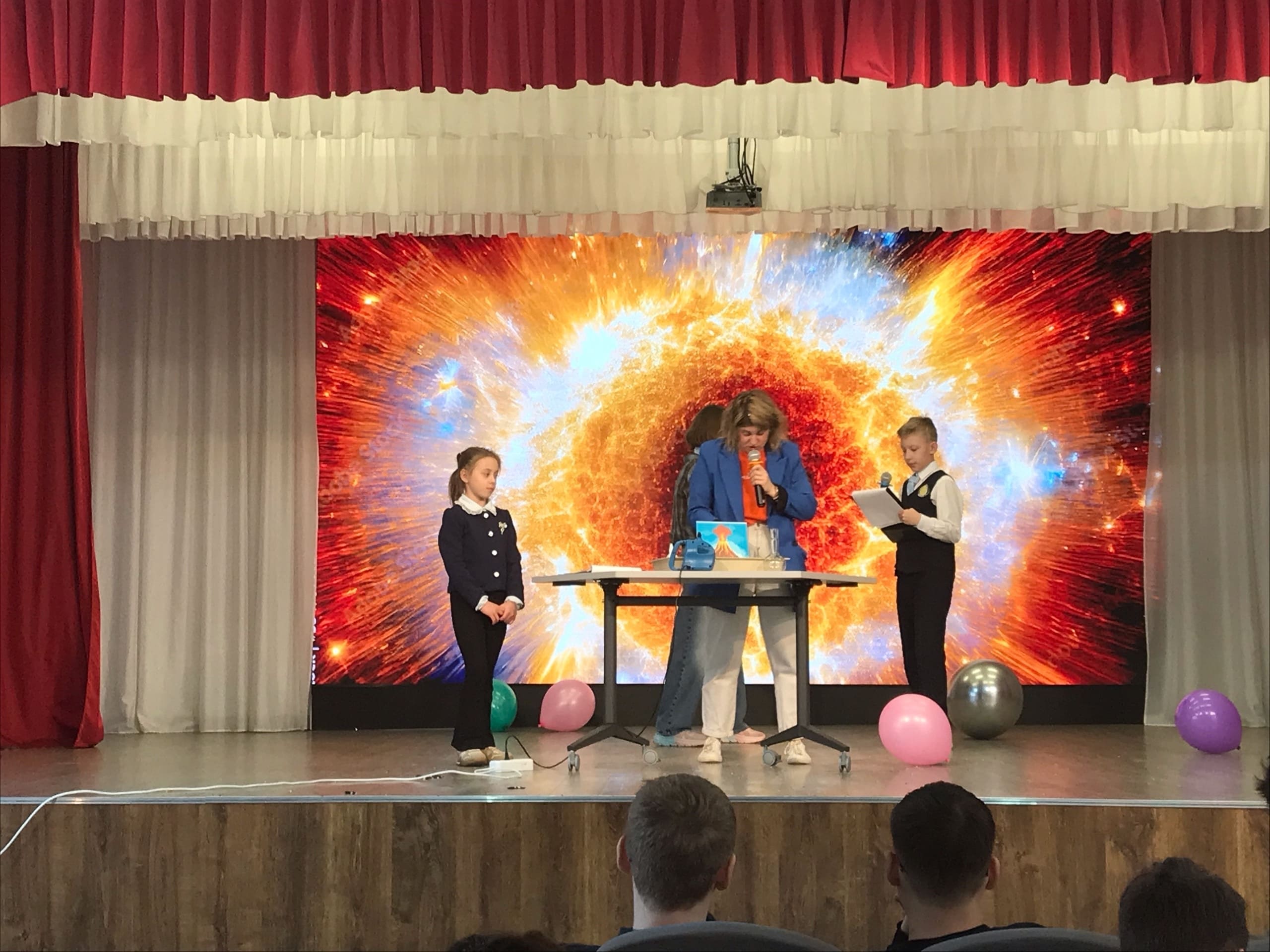 Ведущие, педагоги и ученики гимназии, устроили для гостей настоящий праздник науки: все вместе не только вспомнили о ключевых достижениях проекта «Школа Росатома», но и стали зрителями захватывающих опытов. Ярким моментом шоу стала наглядная демонстрация физических и химических явлений: от зрелищной модели «Большого взрыва» и извержения «вулкана» до эффектных экспериментов с огнем и наглядной иллюстрации закона Бернулли.